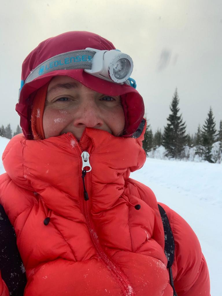 Fjällfararnas vita band, dag 12: Lika tungt som det gick igår på eftermiddagen, lika lätt gled det på idag. Inte så konstigt med tanke på att vi körde längs en bilväg precis hela vägen. Vi hade också turen att kunna packa samman allt och börja köra en liten bit innan det började att snöa. Hade vägen närapå helt för mig själv. Mötte en plogbil och en vanlig personbil under dom 23 kilometrarna som vi färdades längst den.